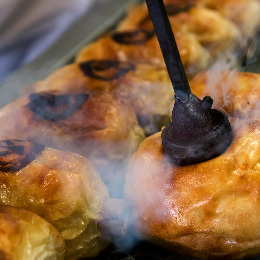 直径は6cmほどあり、中心までじっくりと焼き上げるために、焼き時間は30分以上。じっくりと遠火で焼き上げているので、外の皮はパリッと、中の身は蒲鉾のようなプリっとした食感に仕上がっています。
