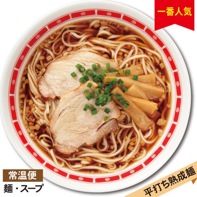 かくし味に「瀬戸内の小魚」を使い、豚の背脂が浮いたこってり感で実はあっさりとした醤油味のスープに、平打ち麺が特徴のご当地ラーメンです。